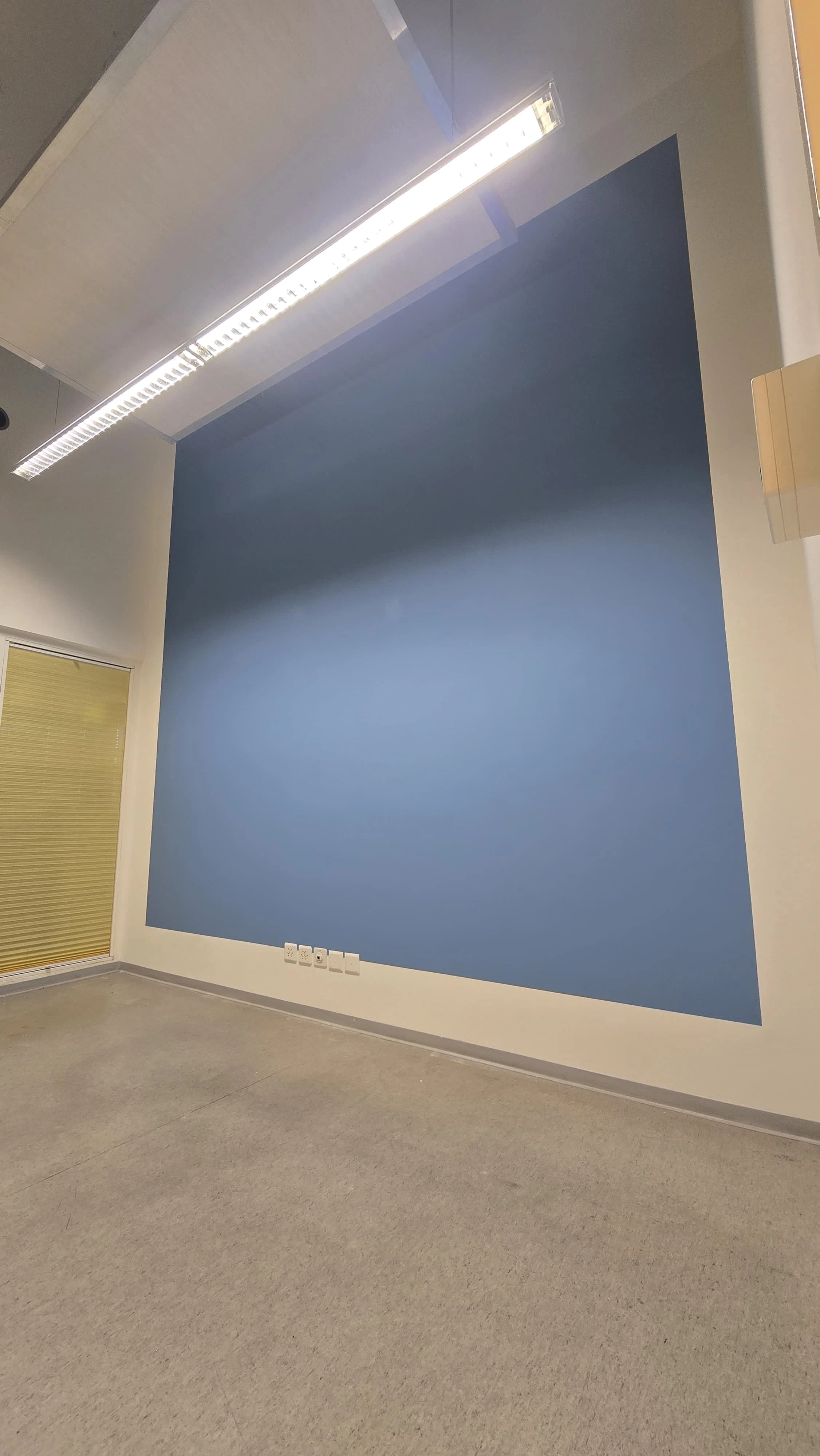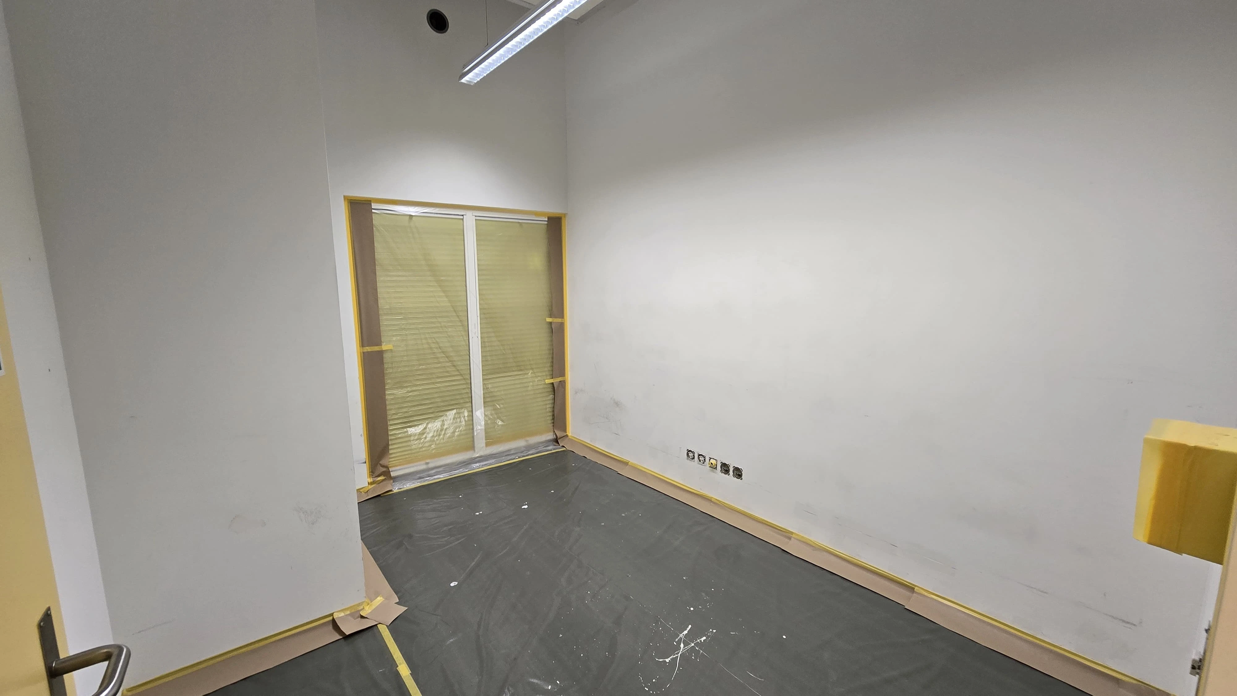 Umfassende Auffrischung eines Büroraums inklusive professioneller Abdeckarbeiten zum Schutz des Bodens und der Einbauten. Das Projekt umfasst das Streichen aller Wandflächen in hellem Weiss sowie die präzise Umsetzung einer tiefblauen Akzentwand als optisches Highlight. Sauberkeit und exakte Farbkanten standen hierbei an oberster Stelle.